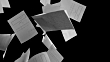 Slow motion medium locked down shot of white invoice sheets colliding in the air on black background.