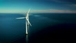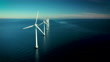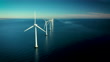 Coastal wind turbines at the oceanic windmill Middelgrunden, situated just outside Copenhagen. These iconic turbines, which can be seen from most places within this capital city, are a symbol of a future with green cities and sustainable energy in Denmark. Footage captured with drone in 4k resolution