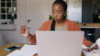 Woman checking budget, debt and bills on a laptop with paperwork, notes and payslips. Female looking stressed, anxious and worried about financial issues and money trouble while checking finances - 4K Stockvideo