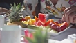 A woman eats fresh fruit at a tropical island resort. - 4K Stockvideo