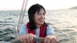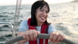 A woman enjoys piloting a private yacht on the weekends. - 4K Stockvideo
