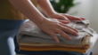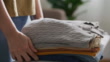 Woman folding laundry - 4K Stockvideo