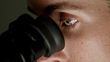 CU A woman looks into a microscope in a laboratory - 4K Stockvideo