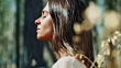 A young women meditating in the forest. She is sitting on a fallen over tree and folding her hands.