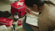 Woman preparing check list emergency kit bag at home - 4K Stockvideo
