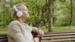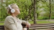 Vrouw ontspannen en luisteren naar muziek in het Park - 4K Stockvideo