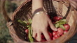 Woman sorting freshly picked tomatoes and basil in basket - 4K Stockvideo