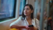 Woman using mobile phone and looking outside through window while commuting in the subway - 4K Stockvideo