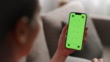 Woman using smart phone with green screen