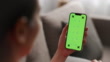 Woman using smart phone with green screen - 4K Stockvideo