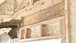 Worker Spraying Expandable Foam Insulation Between Wall Studs - HD Stockvideo
