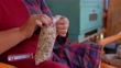 Workers pack traditional salted anchovies - 4K Stockvideo