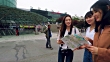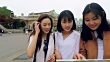 Young Korean tourists just arrived in the city