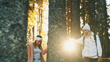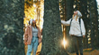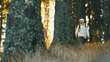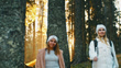 SLO MO Young Women Walking,Hiking Among Trees In Sunny Autumn Forest - 4K Stockvideo